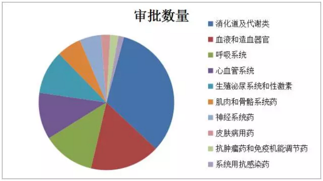 2015年国内共审批中药品种734个,其中39个品种未通过审批;重大专项品种和特殊审批品种各有4个;82个品种获批生产,17个品种批准临床,6个品种企业主动撤回。2015年国内审批的中药品种中,消化道及代谢类品种有403个(23个品种未通过审批),血液和造血器官品种有205个(9个品种未通过审批),呼吸系统品种有153个(10个品种未通过审批),其余按审批数量一次排序为心血管系统品种(137)、生殖泌尿系统和性激素(128)、肌肉和骨骼系统药(72)、神经系统药(63)、皮肤病用药(27)、抗肿瘤药和免疫机能调节药(24)和系统用抗感染药(16)。