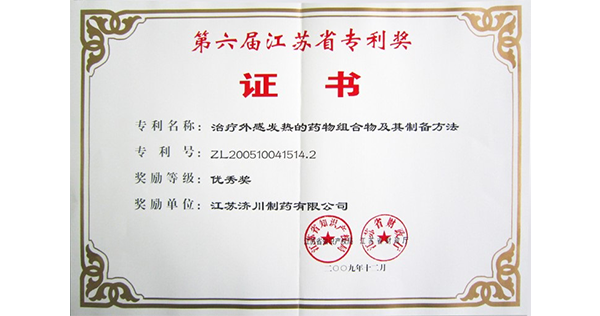 • 治疗外感发热的药物组合物及其制备方法优秀奖
