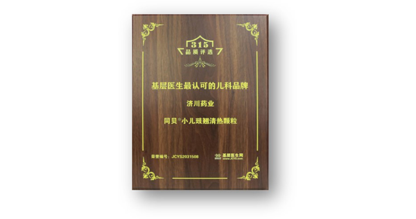• 2010小儿鼓翘清热颗粒(同贝)荣获健康中国最受家长推荐儿童药品牌(证书)